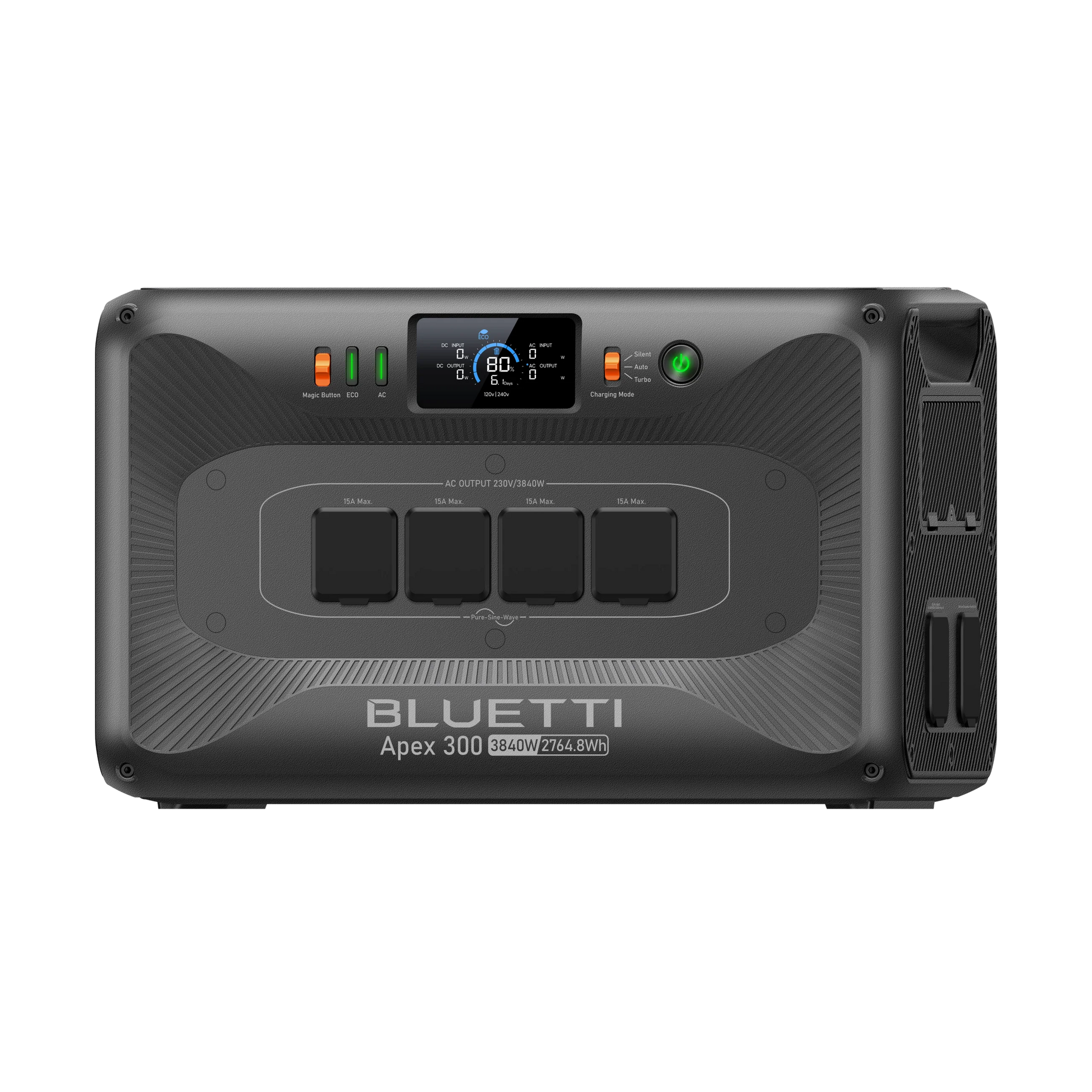 The BLUETTI Apex 300 is a high-performance power station designed for demanding applications at home or off-grid. With a large 2,764.8Wh battery capacity and a powerful 3,840W output, it can run heavy-duty appliances, tools, and entire setups with ease. Built for flexibility and long-term reliability, the Apex 300 delivers fast charging, versatile power options, and dependable energy wherever you need it.